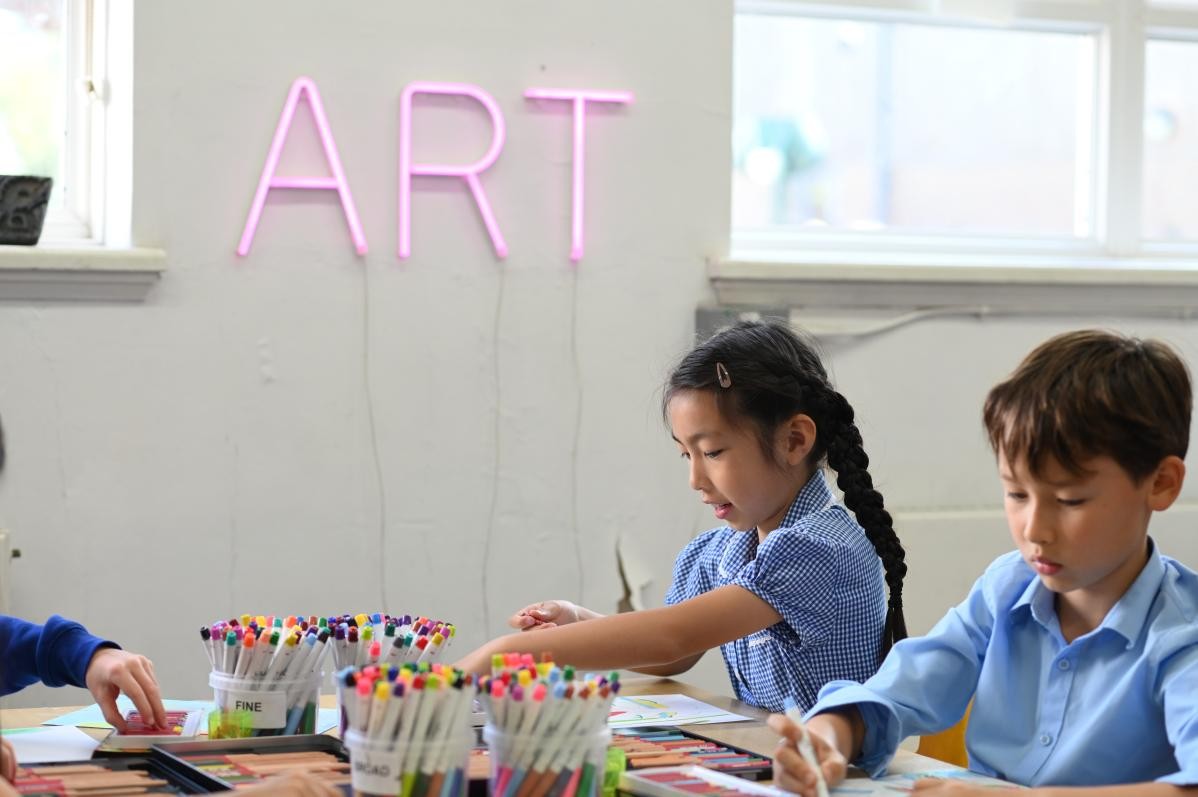 The children are encouraged to experiment and express their ideas using a range of materials, tools and techniques. They learn to express their thoughts and feelings and record what they see with increasing accuracy and attention to detail. They study works from a diverse range of artists such as Holbein, Cezanne, Seurat, Van Gogh, Miro, Hokusai, Bridget Riley which represent a variety of cultures and eras both traditional and contemporary. Many art lessons make meaningful links to other subjects such as English, history, science and geography.
