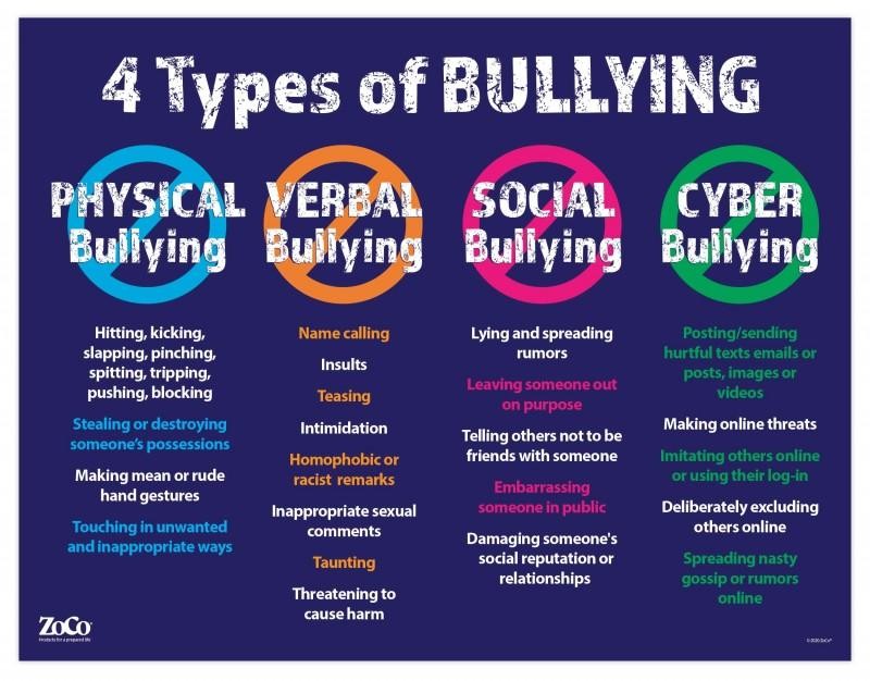 Bullying and cyberbullying can mean lots of different things. It can happen anywhere, including online, at school or at home.