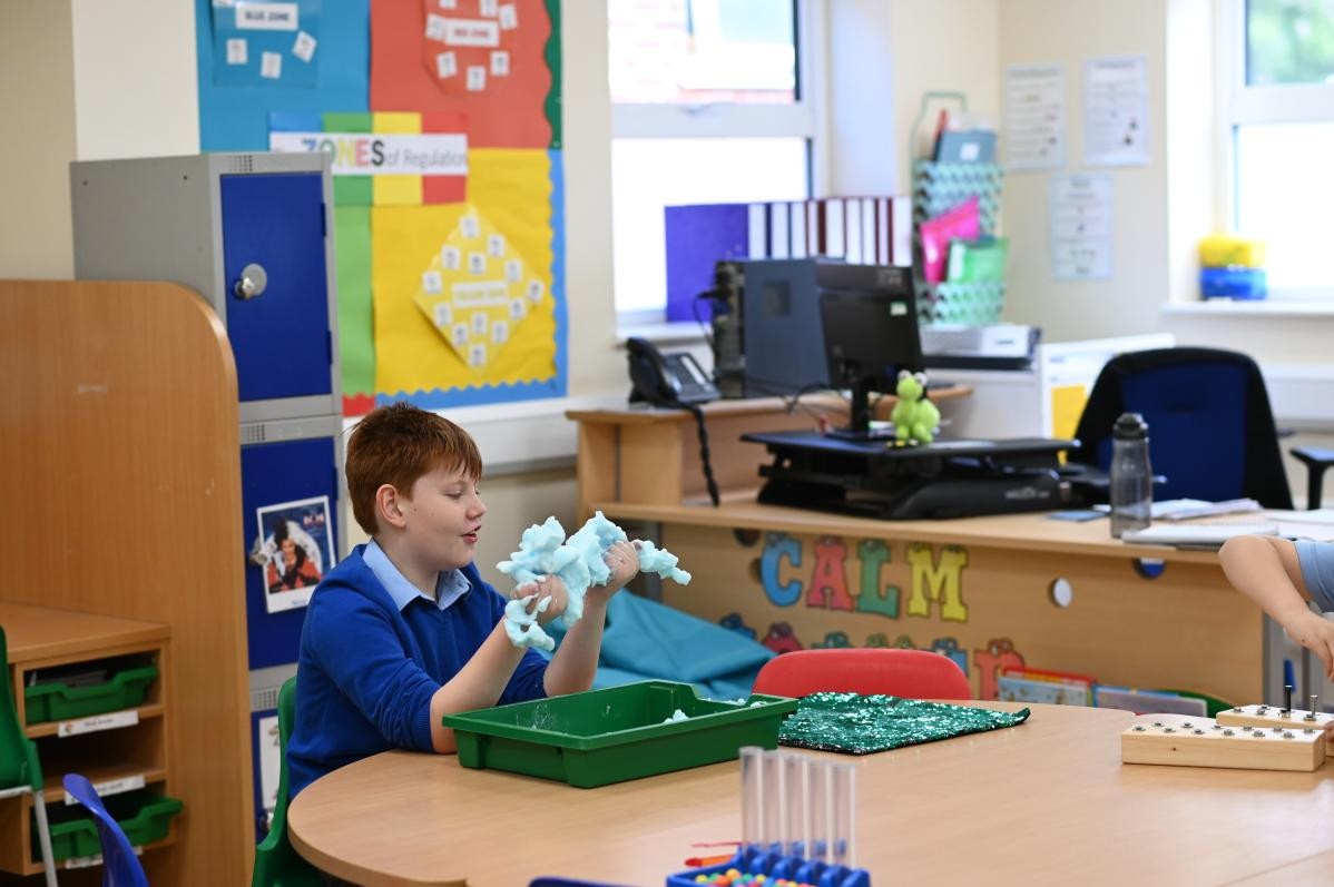 The children in the provision have their own individual work stations. Work stations help children to feel secure and safe; this also supports regulation and creates a calm environment. There are also shared work spaces where children are encouraged to work together and discuss their learning. All lessons in the Provision and across the mainstream classes are differentiated appropriately. Small group teaching sessions in the Provision include gross and fine motor activities; Lego therapy sessions; attention and listening groups; nurture groups; sessions to support working memory; and structured personalised sensory sessions.